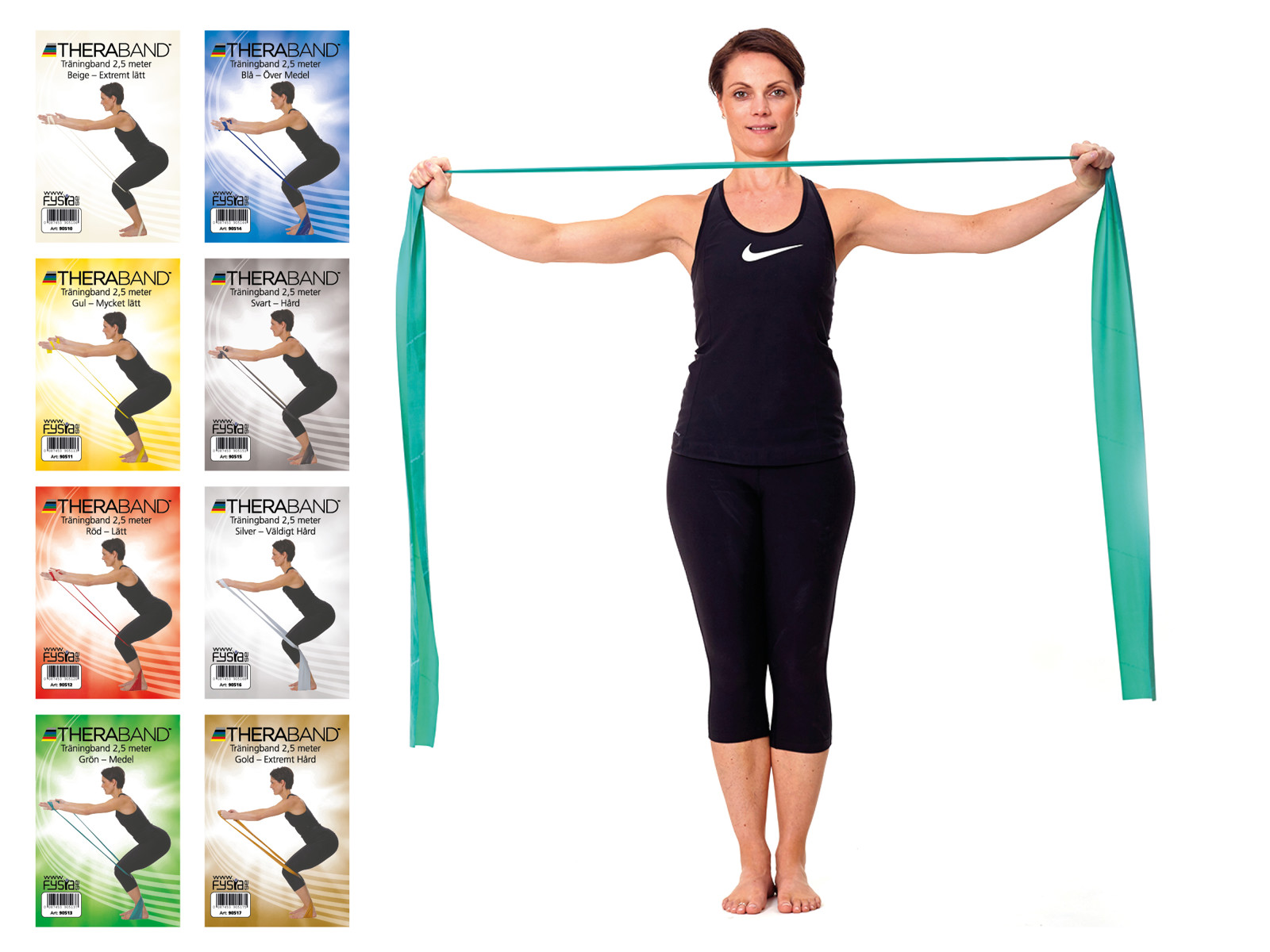 Hos FYSIA har vi valt att marknadsföra alla varianter och motstånd av TheraBand träningsband. Träningsbanden från TheraBand är garanterat av högsta kvalité. Träningsband från TheraBand: Ypperlig till alla former för träning och rehabilitering Skräddarsy din träning och se dina framsteg med TheraBands