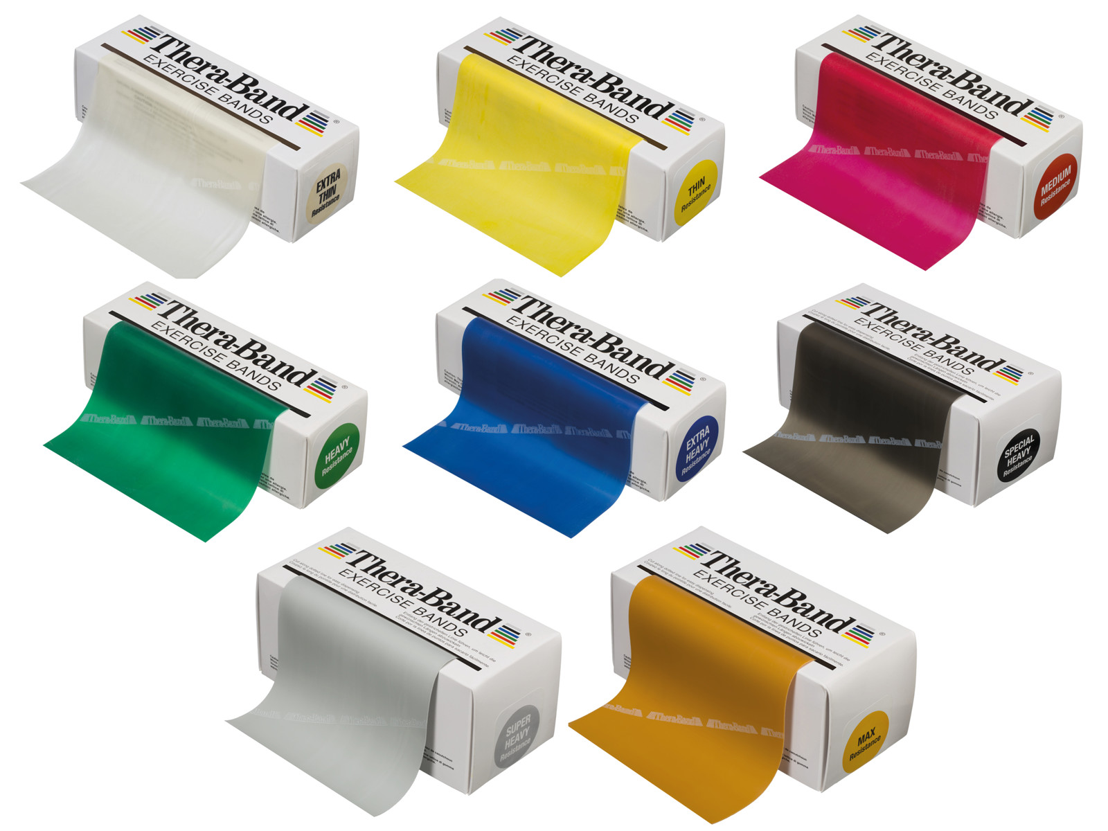 TheraBand tränings-gummiband har en förmåga att förlänga sig upp till 500 % av sin längd. Vid träning och rehabilitering arbetar man vanligtvis med 0 till 200 % förlängning av träningsbandet.